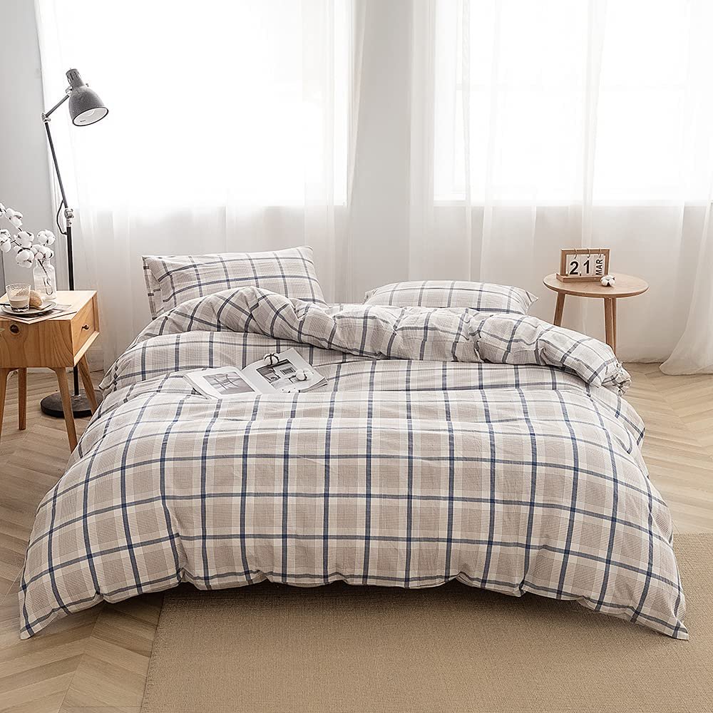 3 Piece Duvet Cover Full 100 Washed Cotton Duvet Cover Ultra Soft And Easy Care Simple Style Bedding Set Full Blue Grid Blue Grid Full Walmart Canada